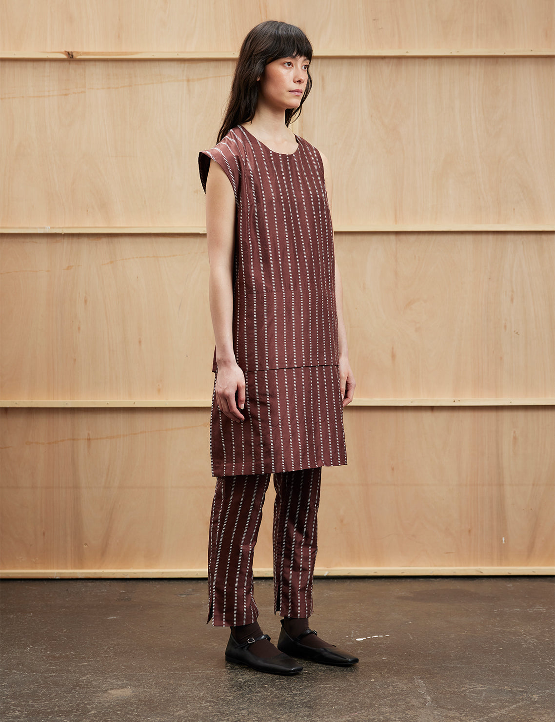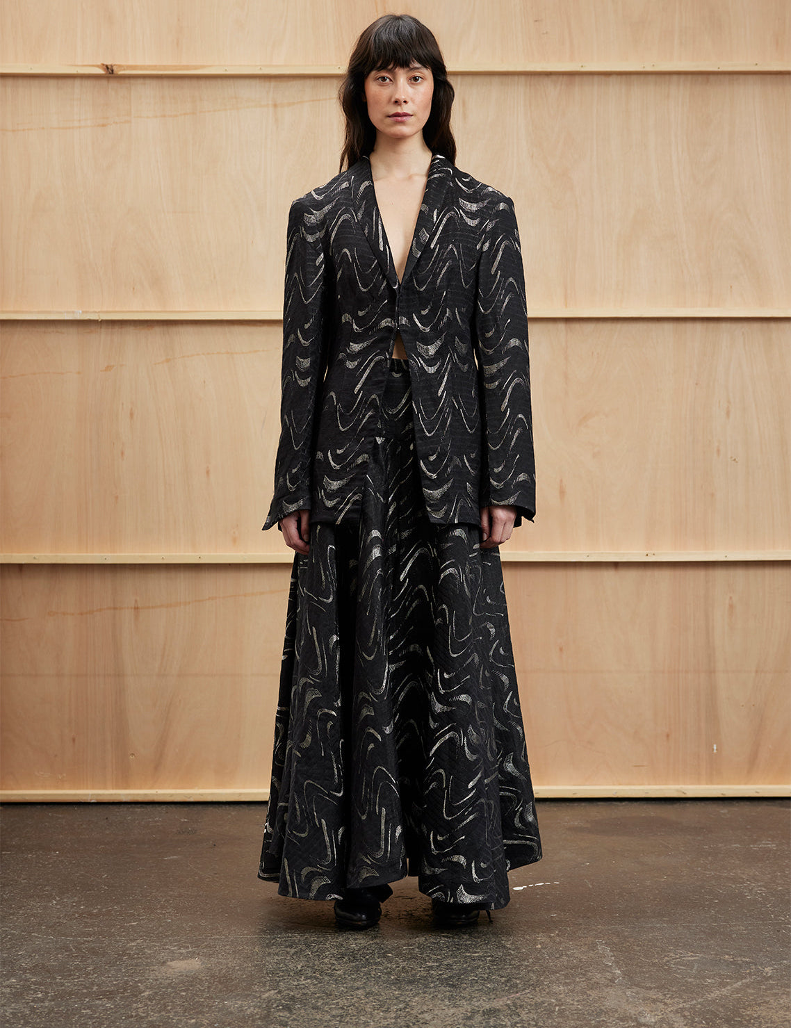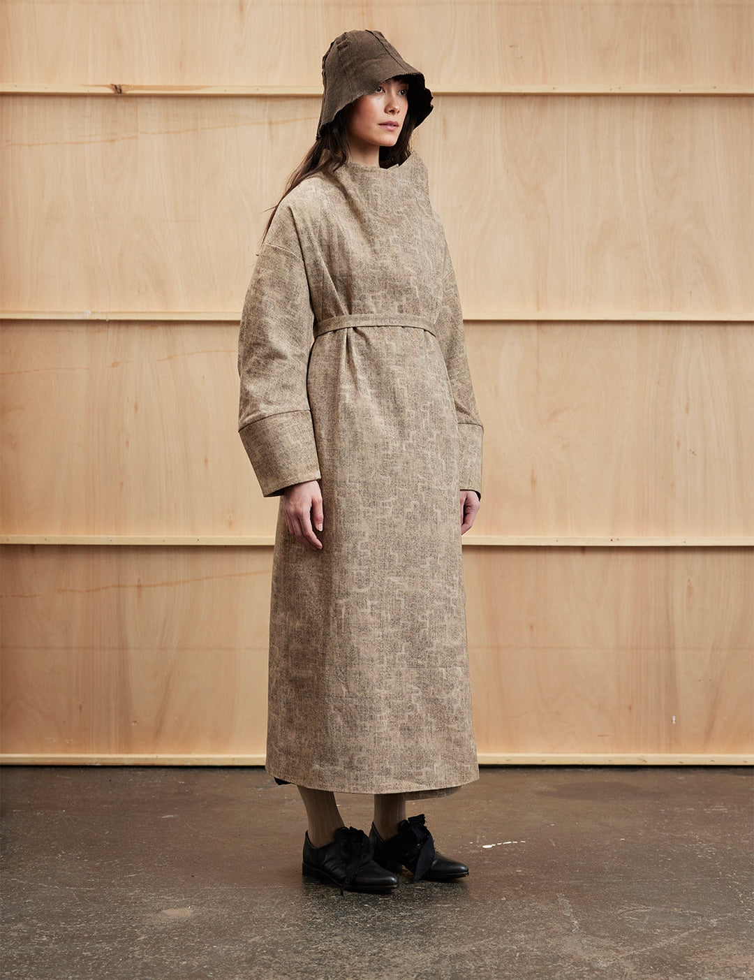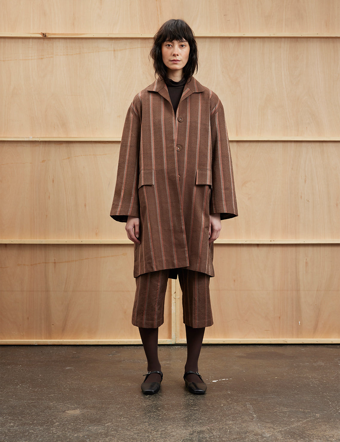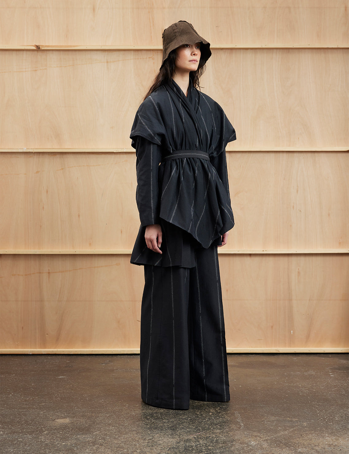 Our AW24 collection, Permanence, explores the quiet beauty of weathered forms through modern, layered silhouettes. At its heart are the rich textiles of Varanasi, realised through traditional weaving techniques such as Phekwa and Kadwa.