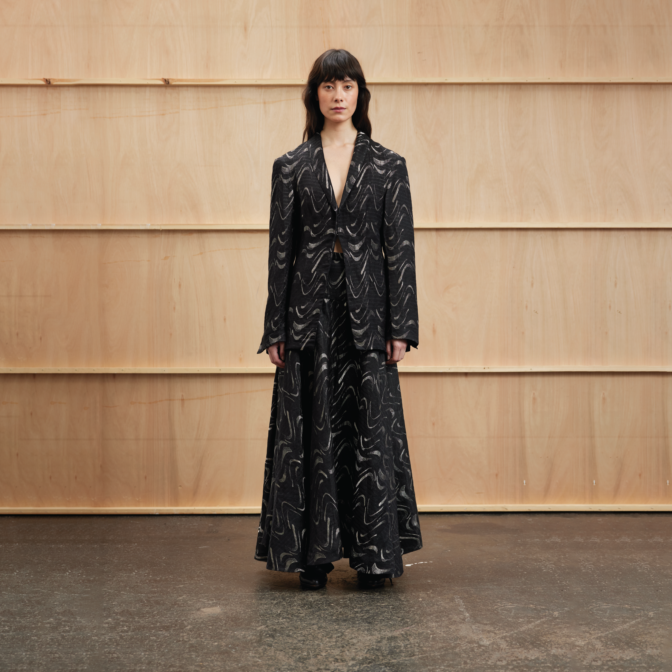 A maxi circular skirt with asymmetric cuts—this November Noon piece could easily become a staple owing to its striking pattern, comfort, and ability to add depth to any outfit.