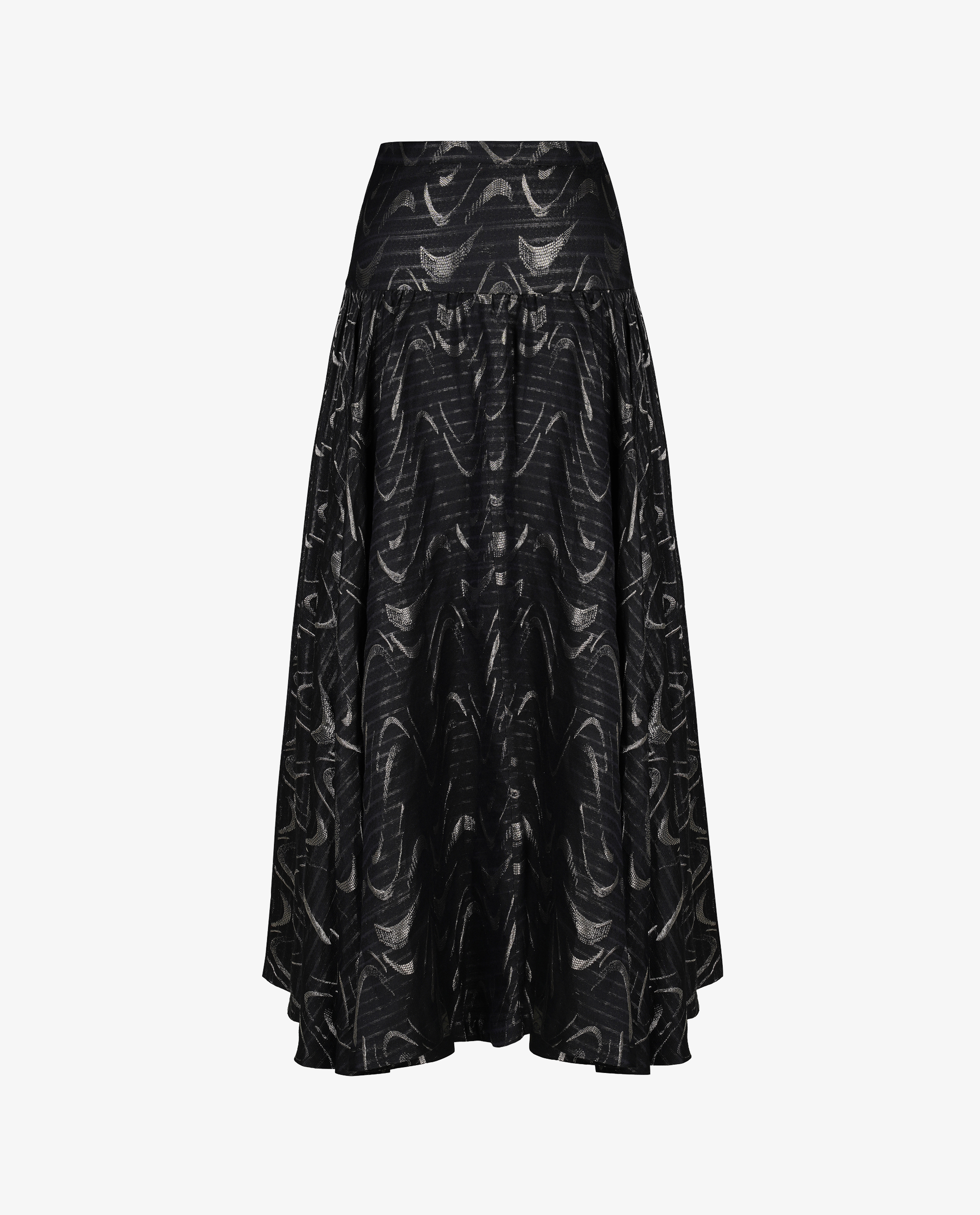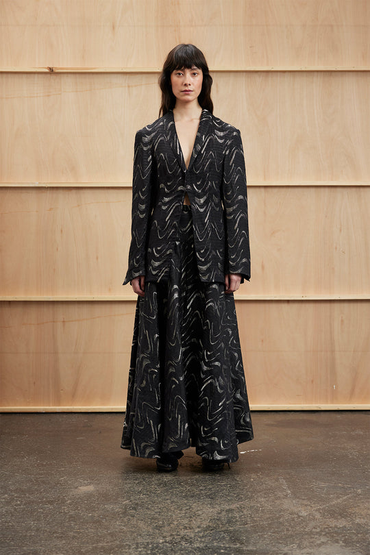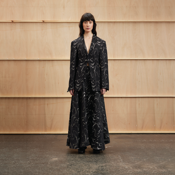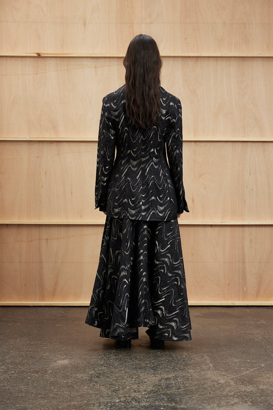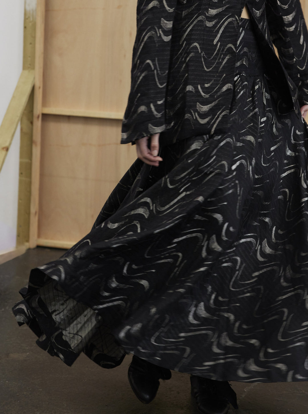 A maxi circular skirt with asymmetric cuts—this November Noon piece could easily become a staple owing to its striking pattern, comfort, and ability to add depth to any outfit.